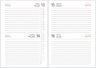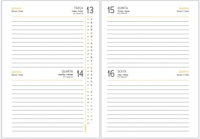 • Design Interno: Planejamento com 2 dias por página, tornando-a mais compacta e leve, ideal para quem prefere uma agenda mais slim.