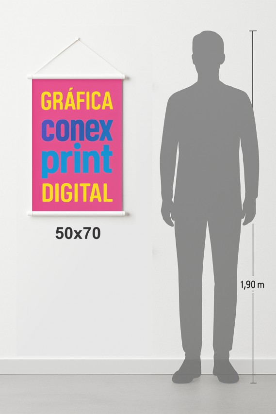 Papel / Material: Lona fosca 440g + bastão e barbante