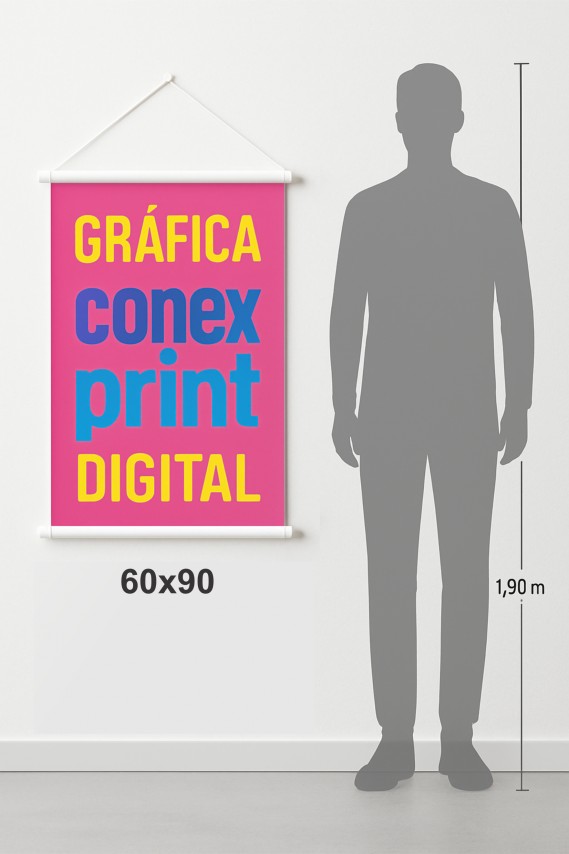 Papel / Material: Lona fosca 440g + bastão e barbante