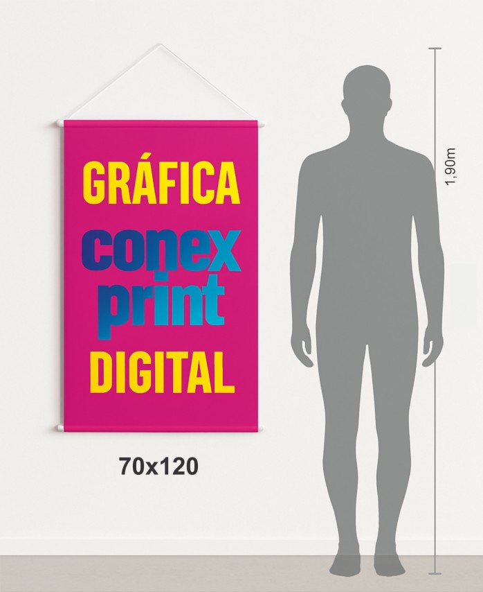 Papel / Material: Lona fosca 440g + bastão e barbante