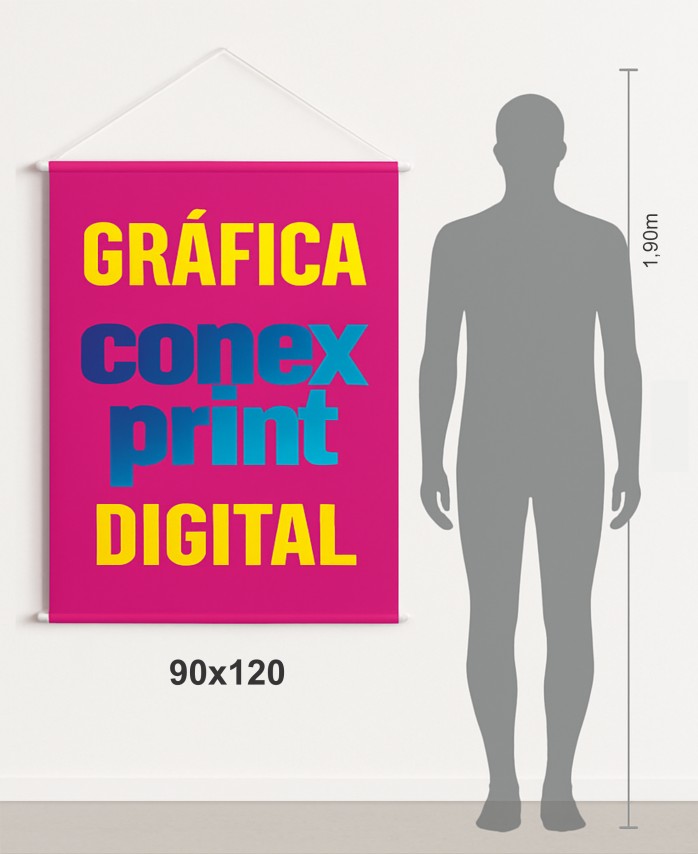 Papel / Material: Lona fosca 440g + bastão e barbante