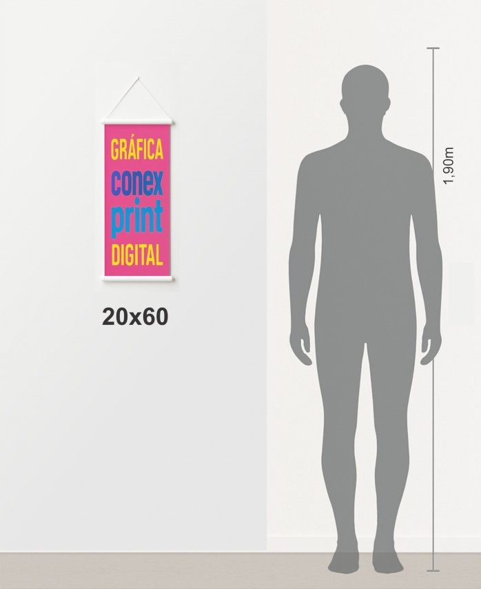 Papel / Material: Lona fosca 440g + bastão e barbante